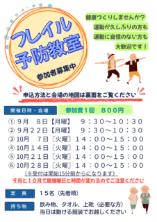 フレイル予防教室で無理なく身体を動かし、健康づくり、そして健康寿命の延伸を目指しませんか?