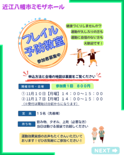 【近江八幡市】フレイル予防教室『11月開催日のご案内』