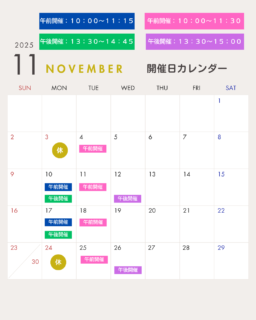 11月は月曜日になります!お間違えのないようお気をつけください。