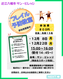 【近江八幡市】フレイル予防教室『12月開催日のご案内』