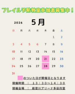 【東近江市】フレイル予防教室『5月開催日のお知らせ』